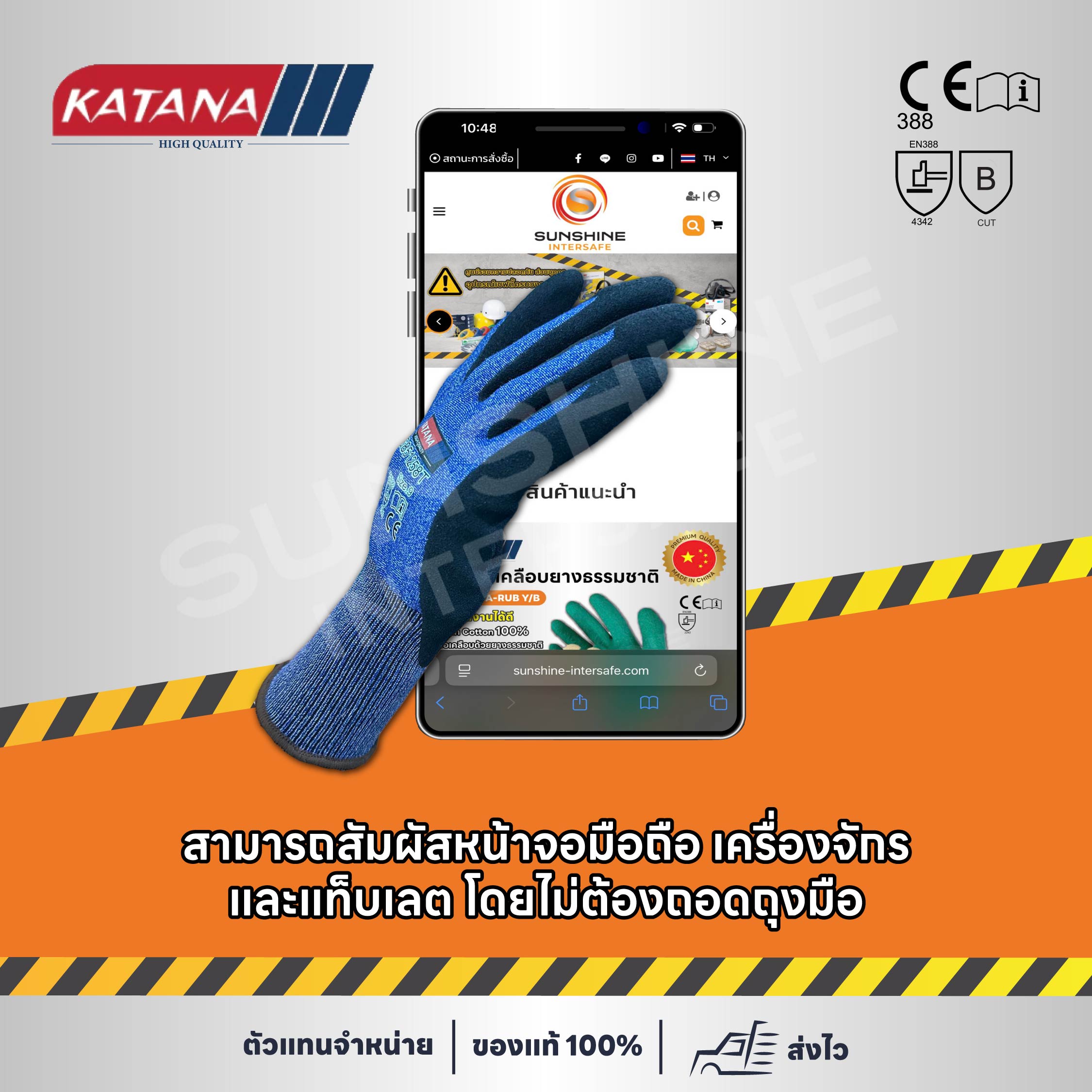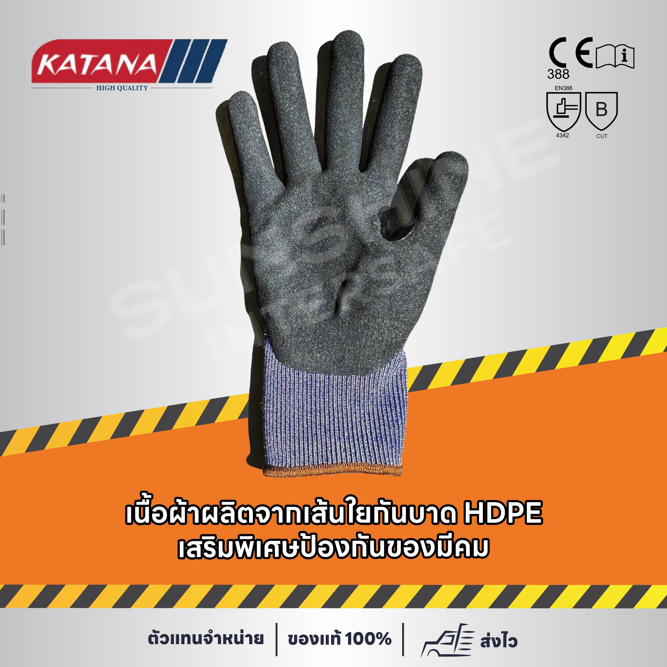 KANTANA CUT3 ถุงมือกันบาด ระดับ 3 ฝ่ามือเคลือบยางไนไตร